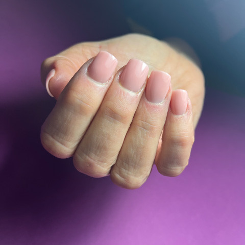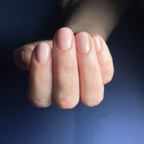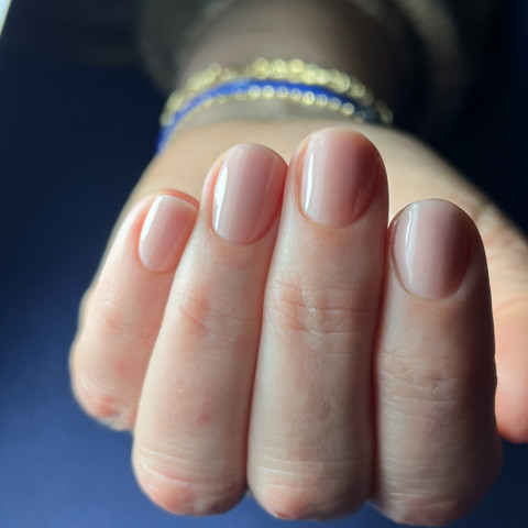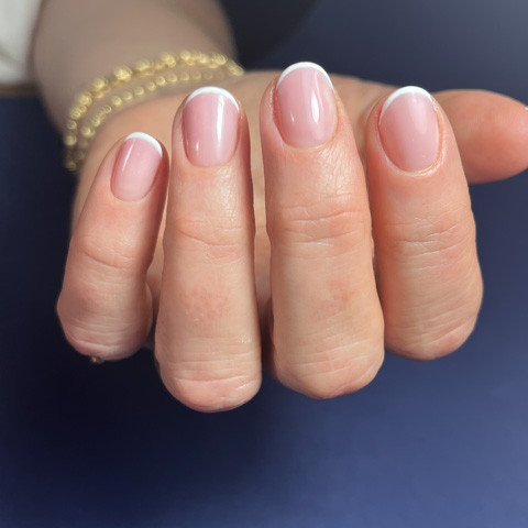 Kynnet käsiteltiin erittäin hellävaroen ja kynnet lyhennettiin. Luonnon kynnen vahvistus toteutettiin tällä kertaa ohuella ranskalaisella.